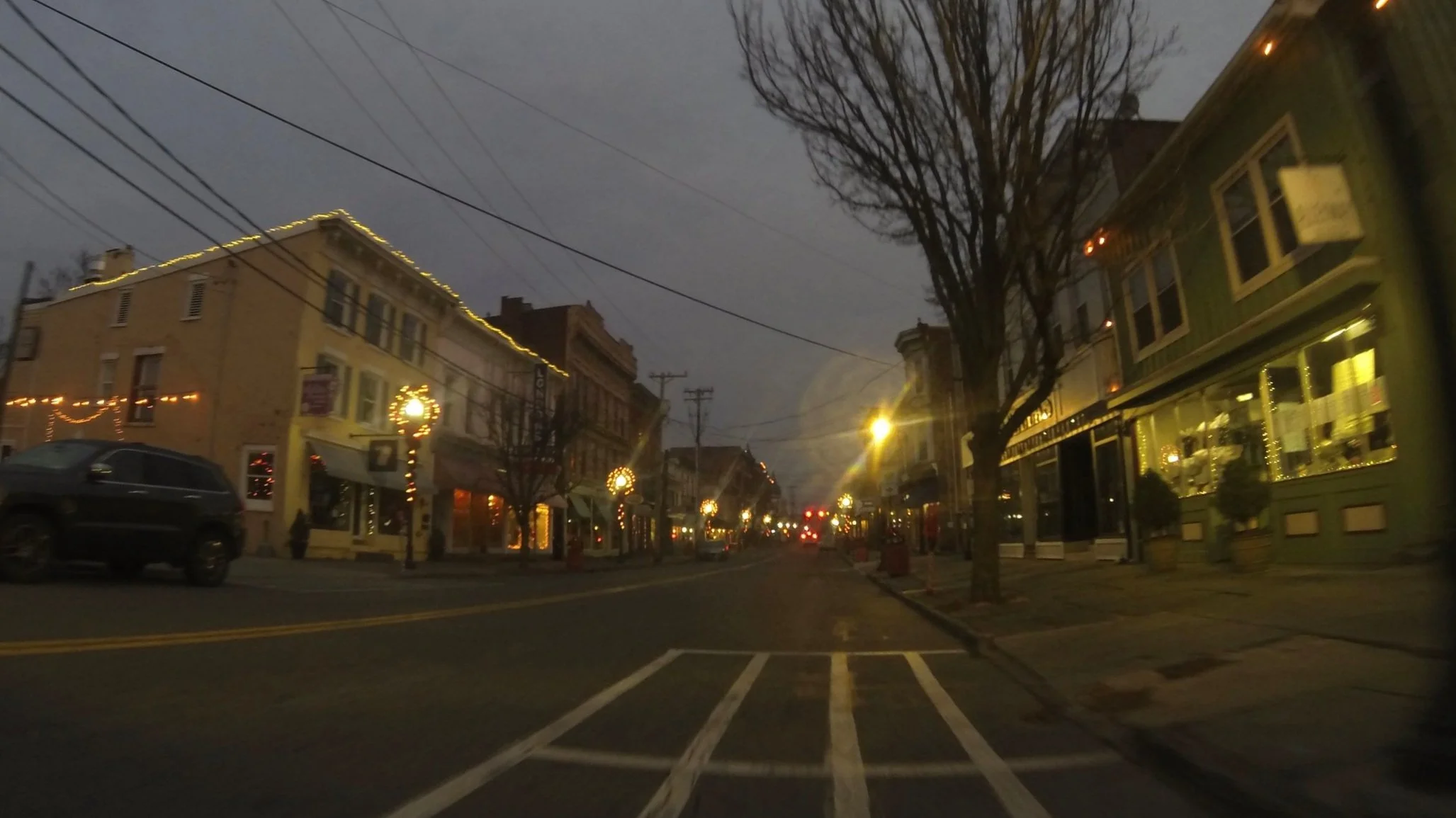 There was drizzle in Kingston that morning, and the weather throughout the day in the Hudson Valley would be misty. I made a note to myself to be extra careful on the roads especially when cycle in the dark. Though it was cold, the drizzle fortunately didn’t turn to snow. Many of the small towns outside of Kingston were still lit up with Christmas lights in the pre dawn, which certainly helped make it easier to see.