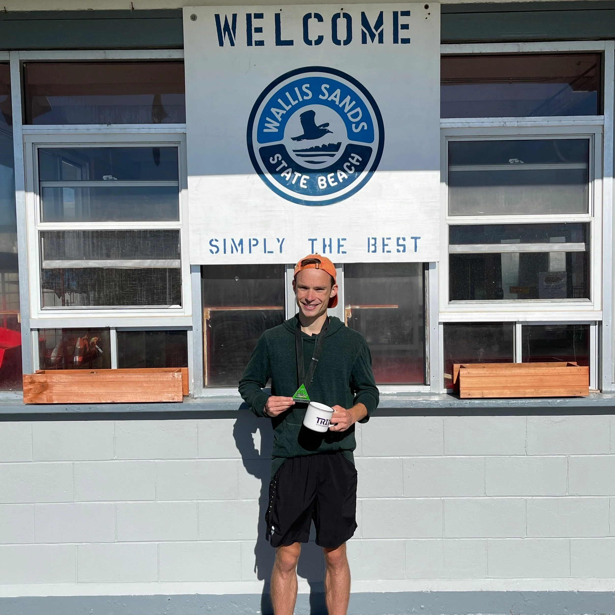 Sure enough I was in first place! The last leg of the triathlon, the 5k run, was an in-and-out 1.5 mile run. A volunteer on a bike was following me, which made me feel great. I’ve only ever been that close to the “lead bike” in one other race, and that was in the self supported 2020 Bucks County Marathon last year. In that race, I was able to keep the lead from Mile 13 to Mile 18, but after running out of water I fizzled out at Mile 18 and three people passed me. That marathon was in the past, and there was no way I was going to let anyone pass me when I had the lead this time.
