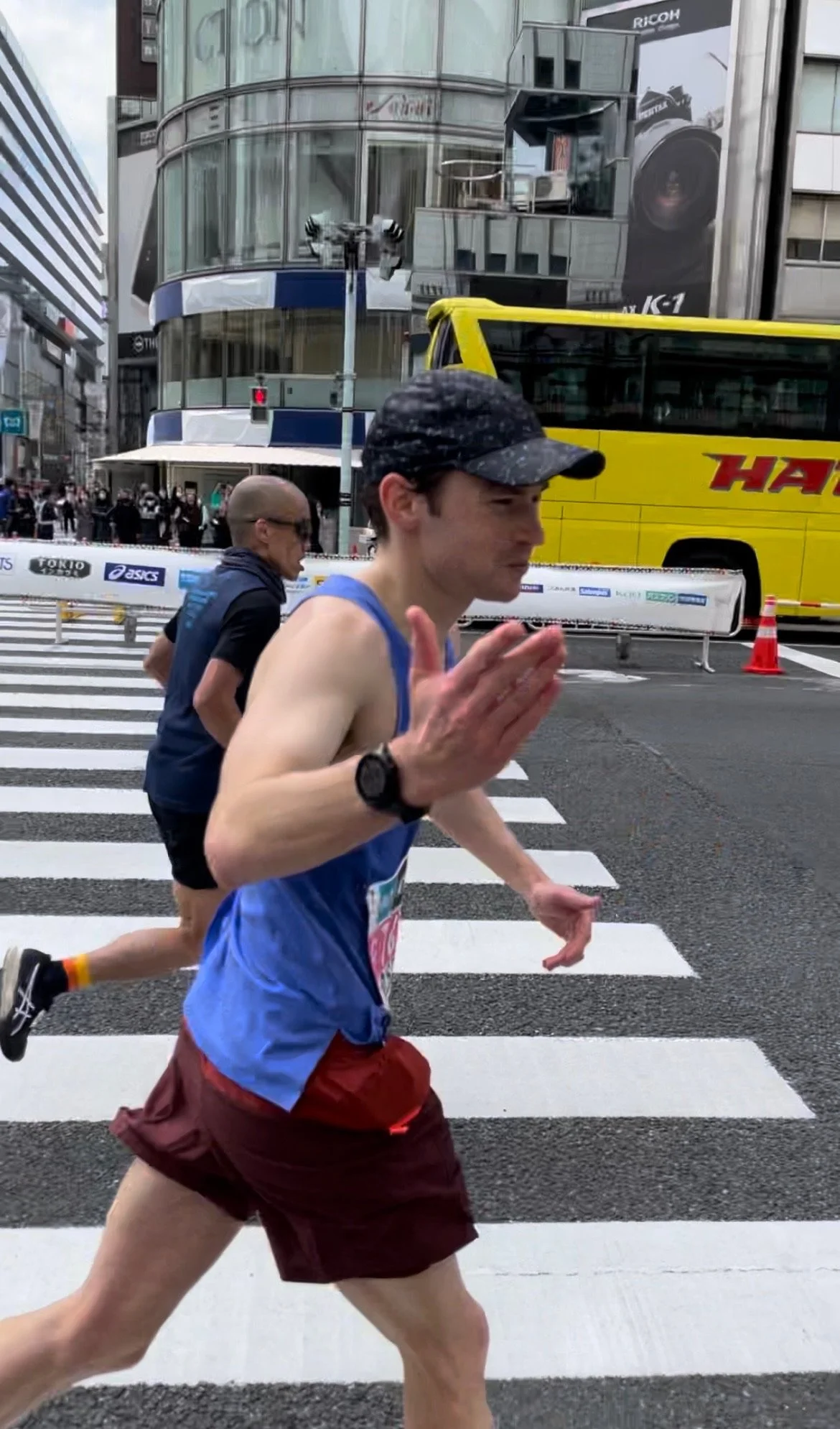 The start was a stampede. Because the Tokyo Marathon had a rolling start, there were little to no gaps between runners. Runners were only as fast as the people in front of them. What made it even more “fun” was that the streets in Shinjuku were narrow with quite a few turns. Because of the log jam, there were times near the start I couldn’t move around runners and I was walking. My watch alerted me of my first mile split, 7 minutes and 15 seconds, which was about a minute slower than I trained for. Rather than get upset with myself, I thought this race would be an interesting opportunity to “negative split.” I would try to run slightly faster each mile, and try to finish the race faster than I started. When life gives you lemons, make a “lemon negative split.”