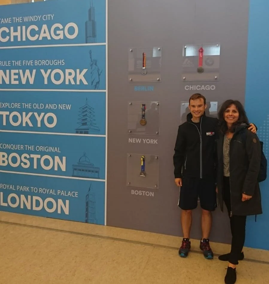 “Große Schwester” Heike and I next to the World Marathon Major Medals back in 2018.