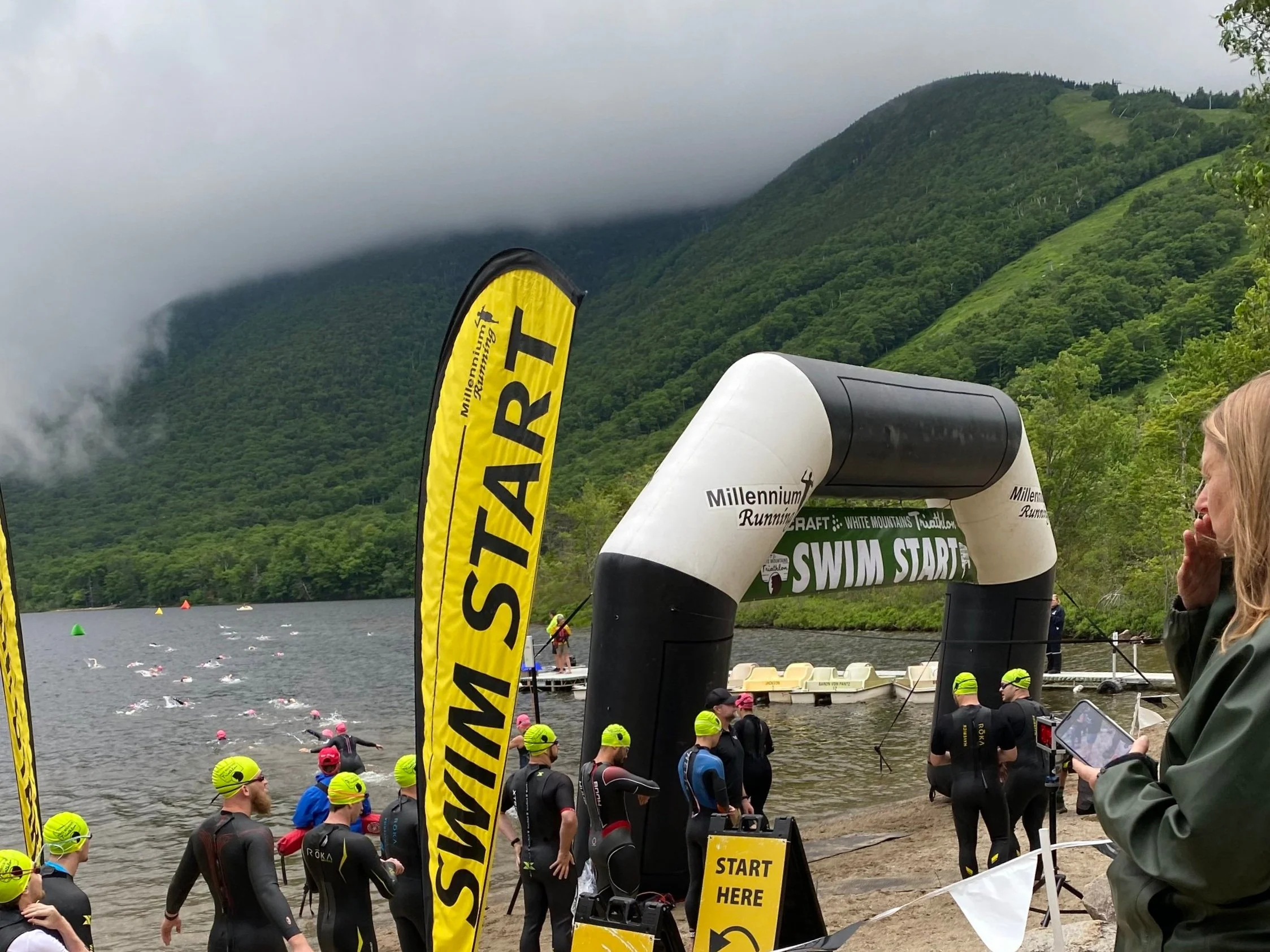 Summer of 2023 would be the “Summer of Half’s.” I would do one Half Ironman in June and another one in September. I chose two races that were very different from each other. The first half was up near my family in New Hampshire, the White Mountains Triathlon. The race has a cooler mountain lake swim, and the bike and run courses are hilly. The second half would be Ironman 70.3 New York on Long Island, with a bay swim and very flat bike and run courses. By doing races that were very different from each other, I hoped to get more experience and learn what kind of long distance triathlons work to my strengths. Though I would train less time-wise this “Summer of Half’s,” I would train more strategically.