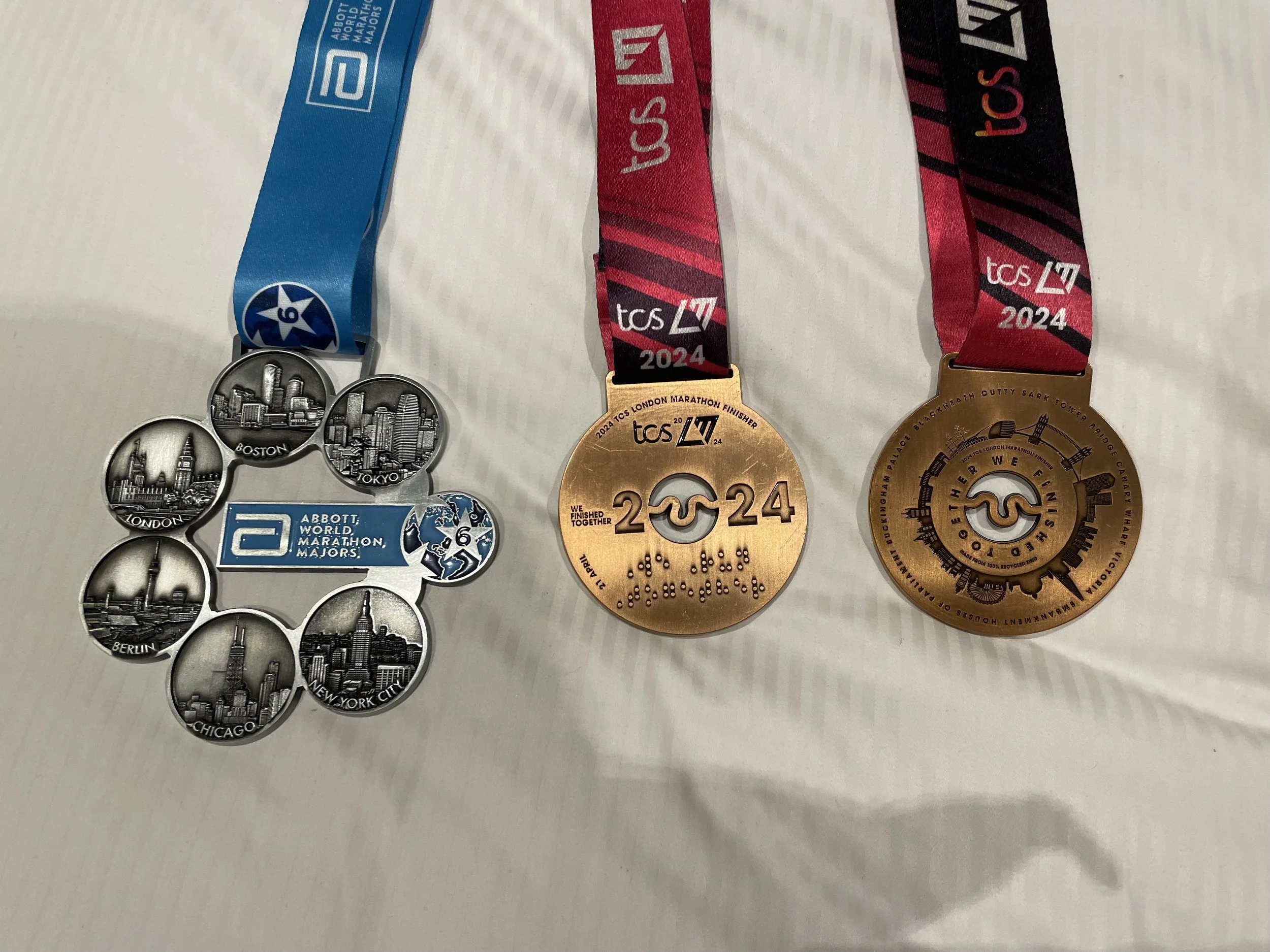 After completing my first Abbott Marathon Star in Berlin six years ago, I thought it was too hard logistically to do anymore international marathons and ruled out in my mind ever completing all Six Stars. However in 2022 with only Tokyo and London left, Kerry convinced me I could finish the Six Star journey. Kerry had helped me in spades and shared the burden of bearing through all sorts of trials and tribulations before Tokyo and London. We endured long and cold training runs, Covid scares, back pain flare ups, unpredictable NJ Transit, wicked long flights, “packed like sardines” train travel, irregular sleeping patterns, and fueling and nutrition in sugar-free lands. Just a couple of more minutes left of bearing the Six Star Journey now, I thought to myself passing the Victoria Memorial in front of Buckingham Palace. I was inspired to “Kerry Kick” the last 200 meters to the finish. I crossed the finish line at 2:57:35. Six Star Journey complete? Not yet…