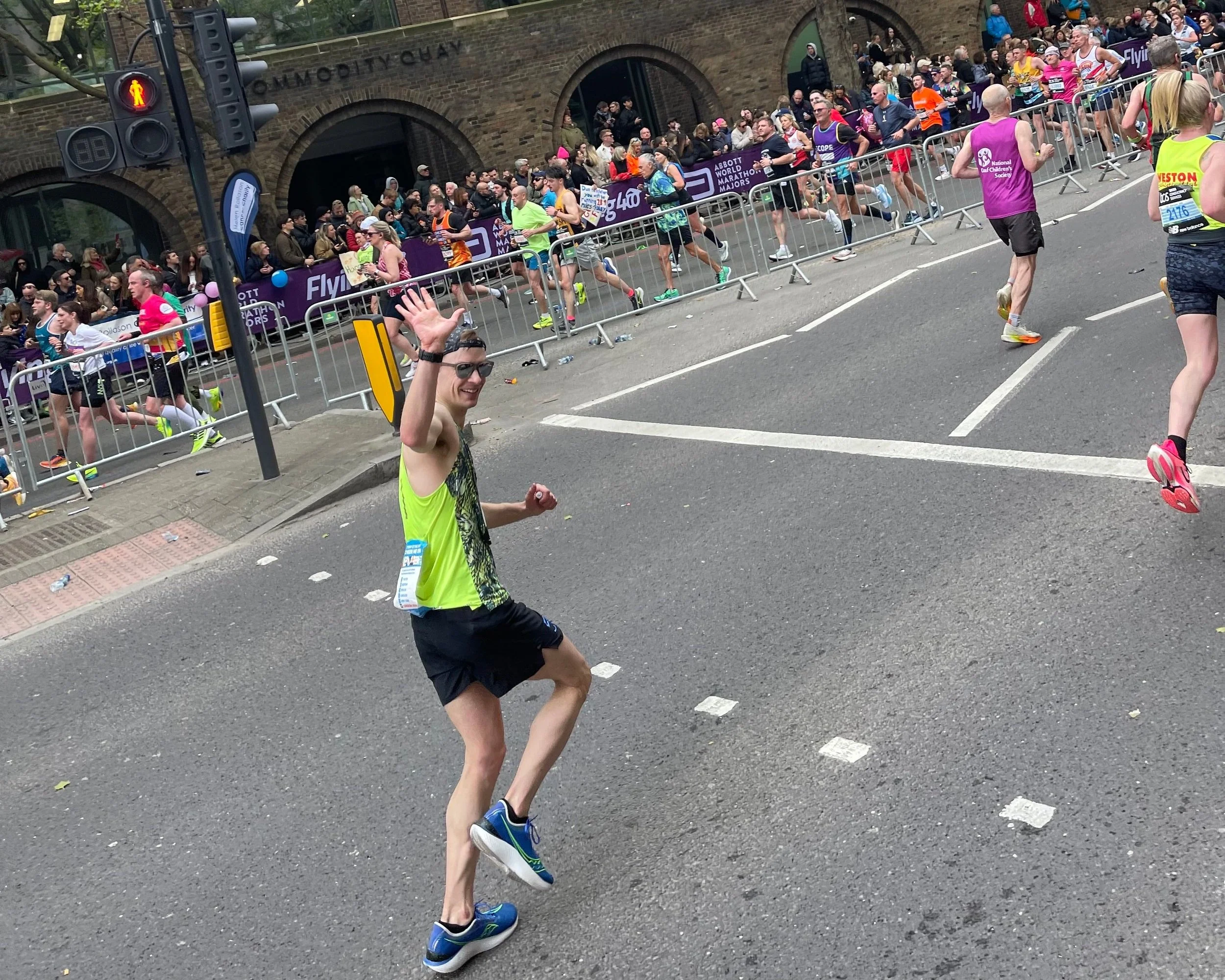 This was the largest race I’d ever run before. While running this crowded race, I thought back to a much less crowded race experience. It was actually me and Kerry’s first race together, the 2021 NYC Marathon. That marathon had many COVID measures, which made the race half the size at 25,000 runners. In comparison to the London Marathon, that 2021 marathon felt like we had the streets to ourselves. Our NYC Marathon experience was very special. Would it be topped by the London Marathon? We’ll just have to wait and see. For good luck at the London Marathon, I wore the same running shorts Kerry gave me for the NYC Marathon.