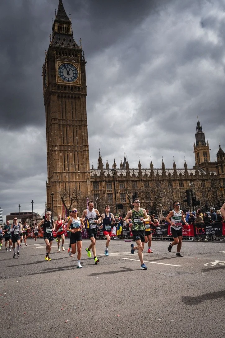 The most significant adjustment Kerry and I had to make during this marathon wasn’t the crowds, but the fueling. There weren’t many aid stations with electrolyte drinks on the course. Maybe it was for the best because the drink was Lucozade, UK’s Gatorade equivalent. Although Lucozade has electrolytes, it also has carbonation and sweeteners instead of sugar and calories. Not my cup of “marathon tea” to be honest. We learned later the British have strict laws on sugar in food and drinks. To make sure we were getting enough electrolytes, Kerry and I brought Base Salts with us and used them every mile. They worked really well, no cramps for either of us. I also used some Marten Gels every six miles, and Kerry also had maple syrup and Scratch chews for fueling in between aid stations.