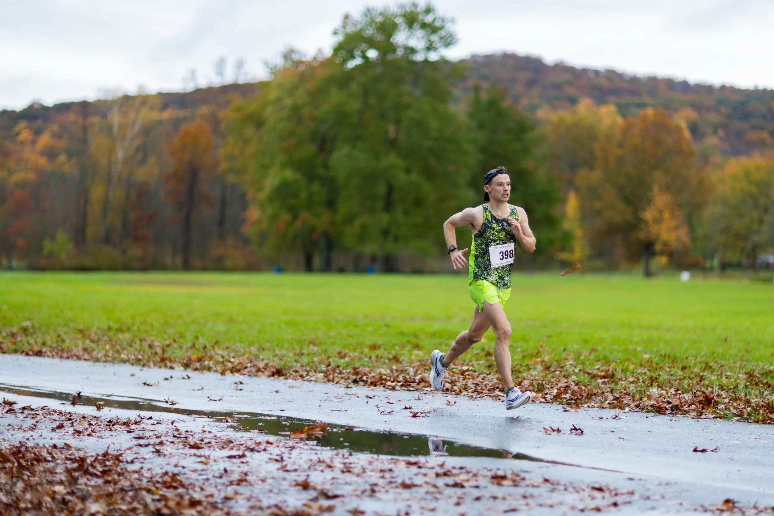 I realized pretty early in the race, I wasn’t going to hit the same paces I did back in October at the Sri Chimnoy Half. Having to cope with sciatica pain for the last couple of months, my fitness level wasn’t the same as what I had the fall. The Fred Lebow course itself also didn’t make things easy. It was much hillier than the “flat-as-a-pancake” Sri Chimnoy Half. I did have a secondary goal though: to beat my old course record of 1:25:49. I set my sights on that goal and did my best to make sure I would run under that time.