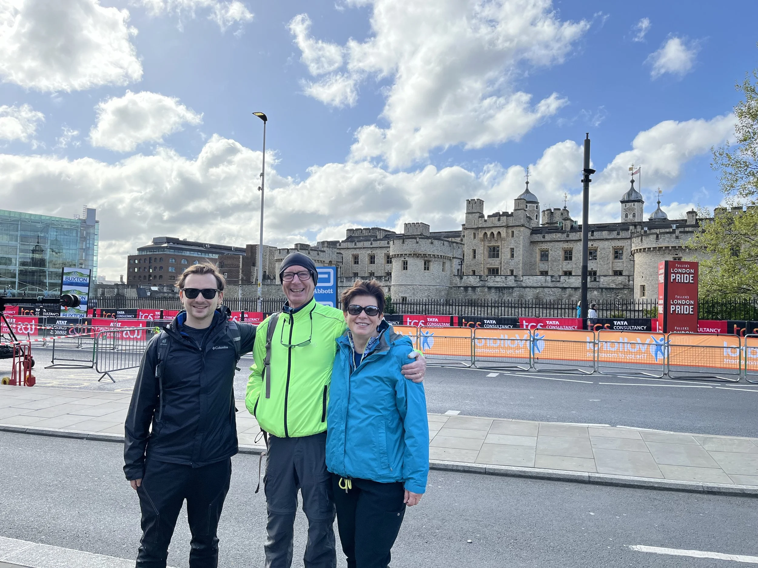 Riding the happy highs of being engaged, Kerry and I headed to England ready to take on anything the marathon would throw at us. It also helped we would have a Merrill contingent there too. Momma, Dad, and Doug would fly over to support us in London, and over there we’d meet up with the first au pair we had, Su Jones, and her family.